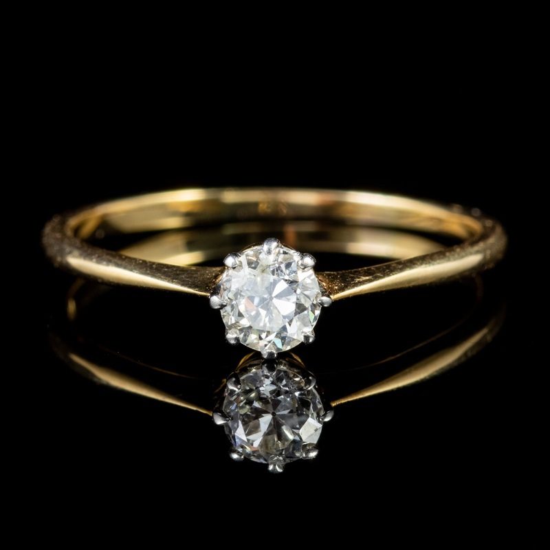 An elegant antique Victorian solitaire ring crowned with a stunning 0.40ct old cut Diamond which is a superb SI2 clarity stone.