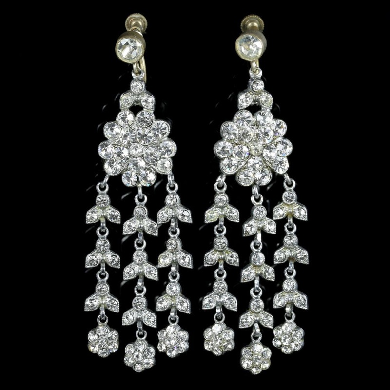 These are a fabulous pair of long Paste earrings set in white Metal.