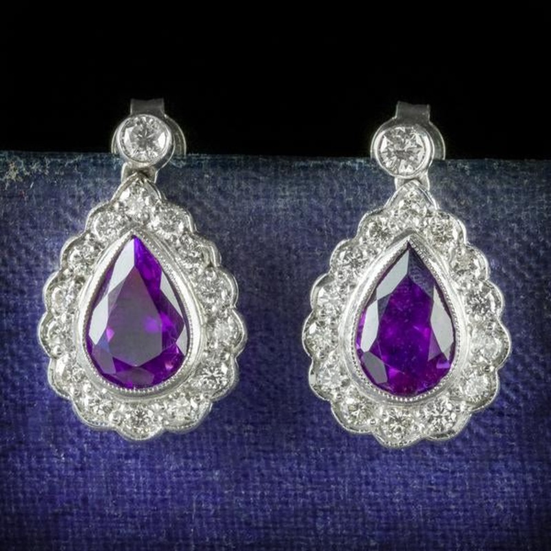 These fabulous 18ct White Gold earrings are set with 2.60ct of Old Cut Diamonds and 4ct central Amethyst.